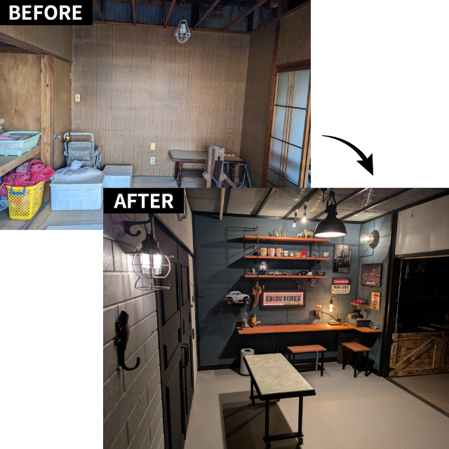 築50年ぐらいの倉庫として使われていた離れを趣味部屋としてDIYしてみました。