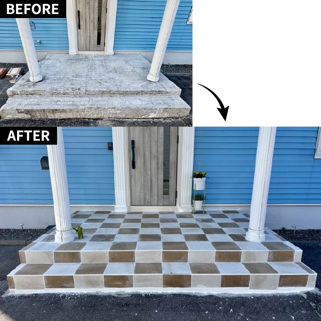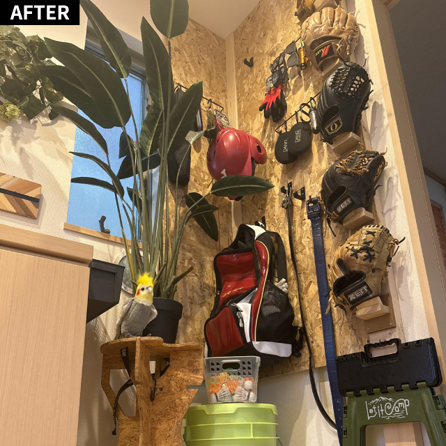 玄関タイルを貼る範囲が広いので大変でしたが、昔の小さいタイルよりものすごく映えますね!タイルはやっぱりDCMのラインナップがオシャレで、めちゃくちゃ明るくなり来訪の方々に褒められて気分もルンルンです♪自分で施工したと説明するとみんな驚きます!さいこうです(*´`*)