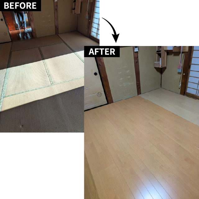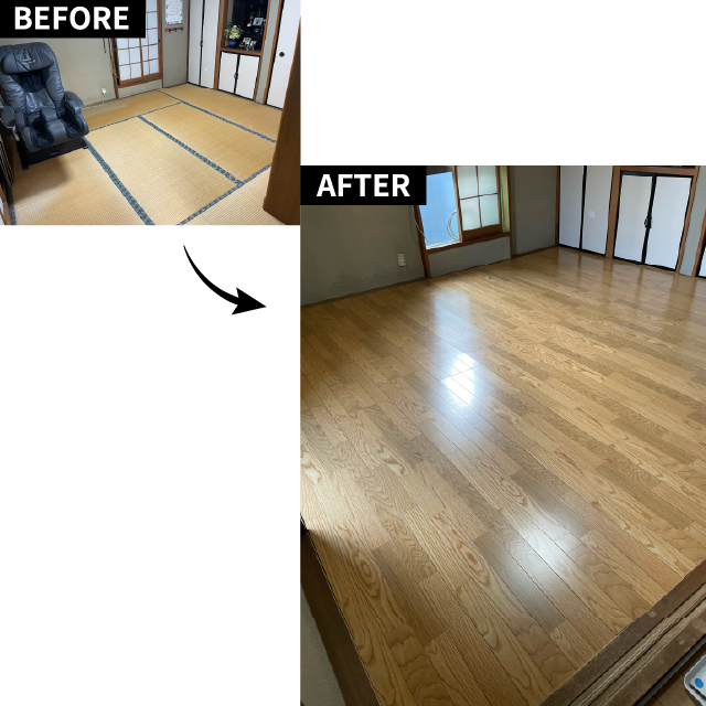 事前準備をYouTubeにて確認し根太組み→断熱材→コンパネ→フローリング床材組みを行いました。工具は別として材料はすべてDCMさんで購入しました。作業に丸二日を要しましたが自分なりに納得のいく部屋にリフォーム出来ました。