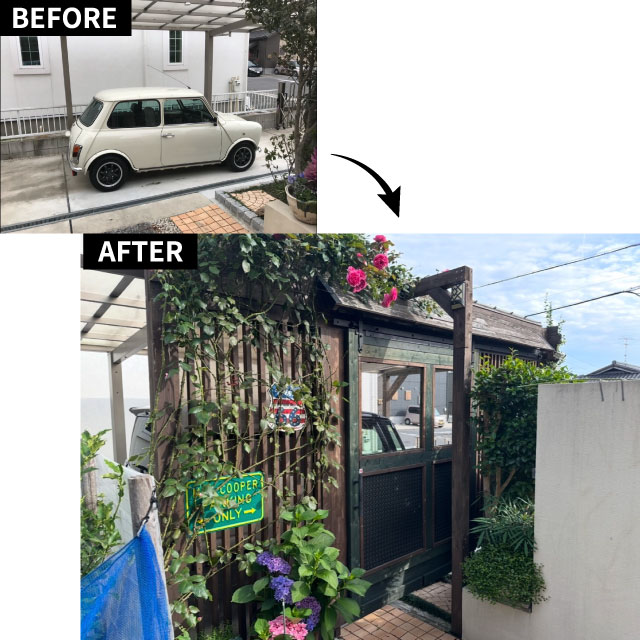 家族でいつでもバーベキューが楽しめるように庭作りをDIY。丸見えだった庭のフェンスを高くし、外からの目線を避けつつ、完全に目隠しせずに防犯面にも配慮しました。 いつでもバーベキューできるようU字溝コンロも常設し、皆が自然と集まれる場所になりました。