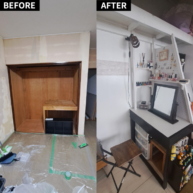 押し入れをお気に入りの場所に大改造! メイクが大好きなのでお気に入りのメイク道具も可愛く見えるように白で統一しました!