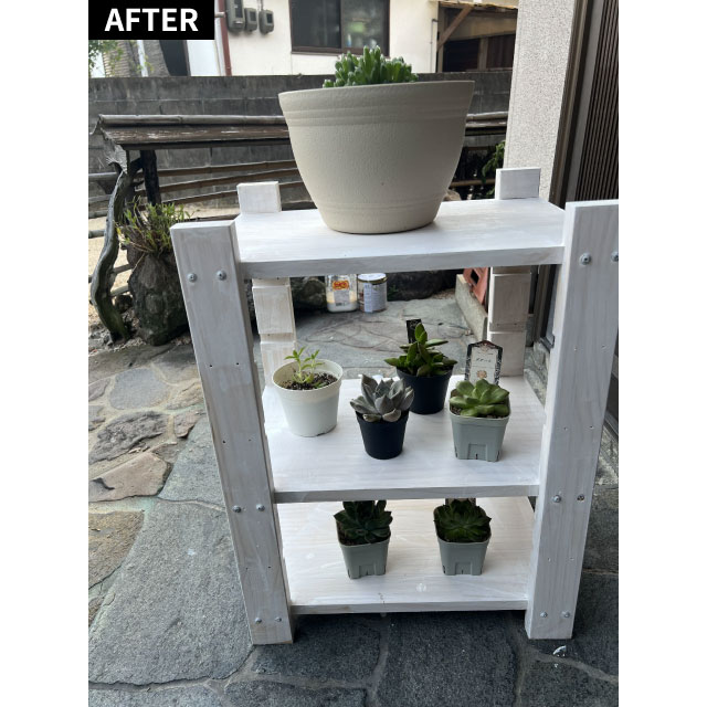 脚の部分は木材なのですが、アイアン風に見えるようにアイアン塗料で塗装しました。