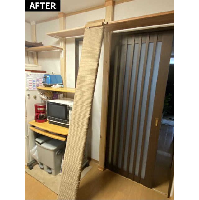 リビングを、猫の好きな爪研ぎで、高い所に登ったり、上を移動できる