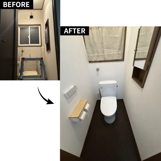 1. 空間の再構築:壁をぶち抜き、洗濯・乾燥・収納が完結する家事動線を実現しました。 2. 質感の融合:DCMのデニム・水色壁紙と、床の籐タイルが絶妙に調和。高級旅館のような落ち着きと清潔感を演出しました。電球からライトへの交換で、明るく爽やかな「理想のサニタリー」へと大変身です。 3. DIYの加速:DCMののり付き壁紙は驚くほど扱いやすく、素人でもプロ級の仕上がりに。壁紙一つで部屋が変わる楽しさを知った今、張り替えたい部屋がまだ3部屋あるので、次回もぜひ利用したいです!