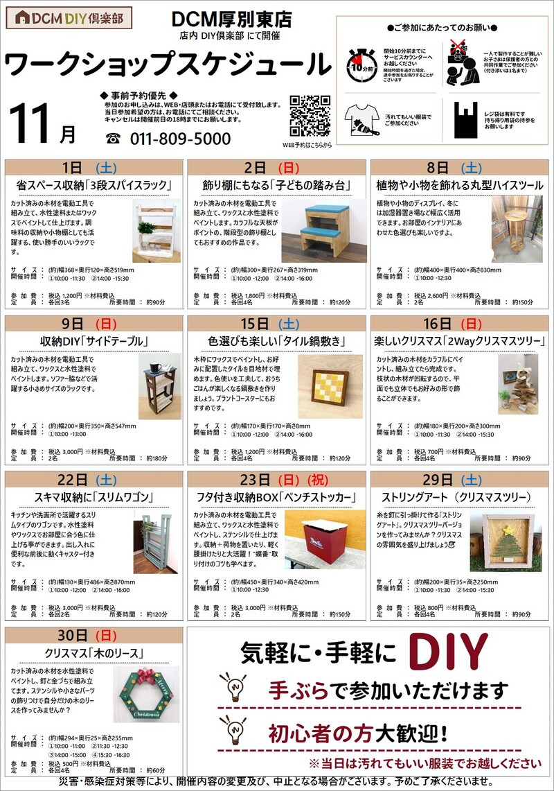 『11月のDIY教室スケジュール(厚別東店)』のご案内