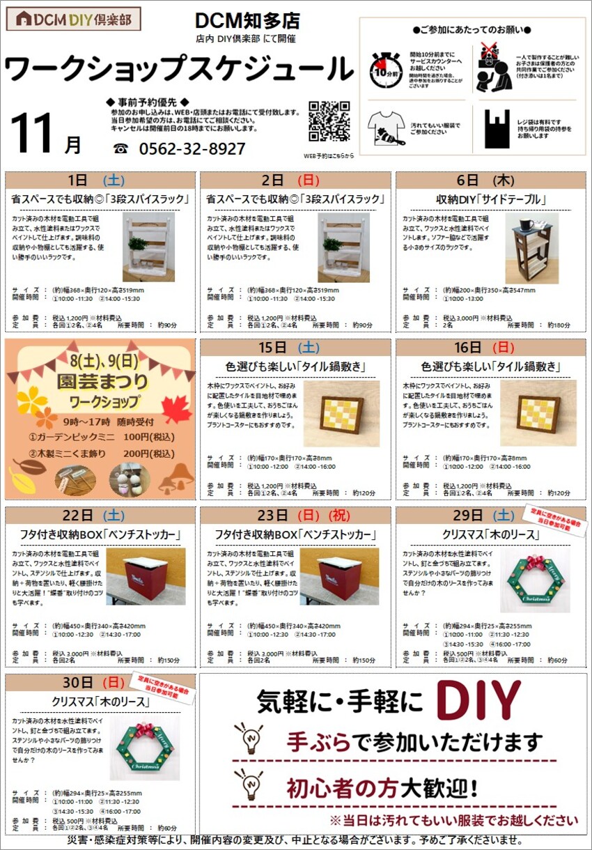 『11月のDIY教室スケジュール(知多店)』のご案内