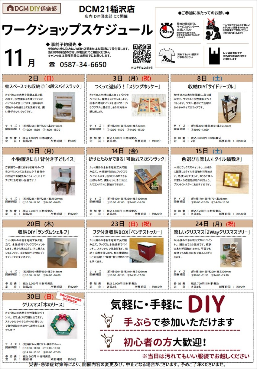 『11月のDIY教室スケジュール(稲沢店)』のご案内