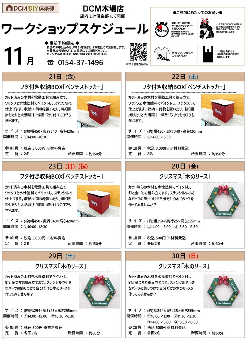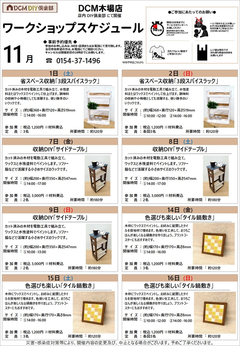 『11月のDIY教室スケジュール(木場店)』のご案内