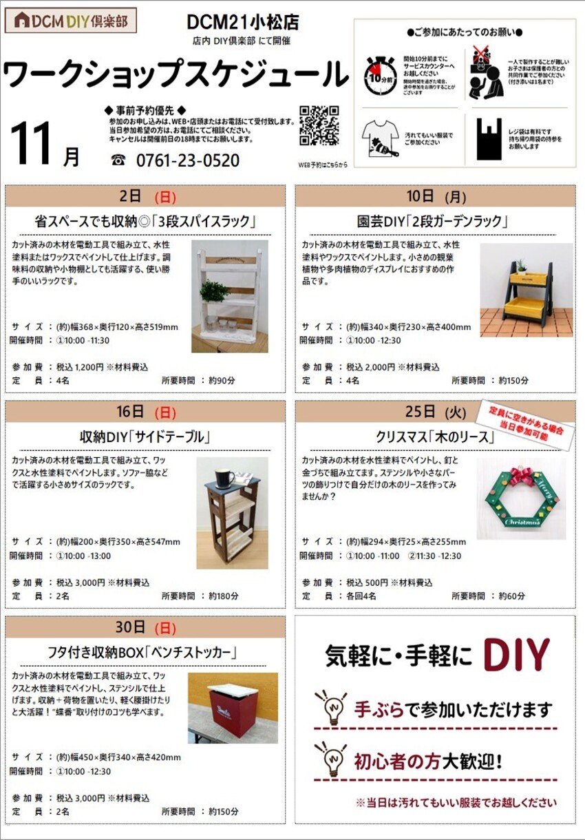 『11月のDIY教室スケジュール(小松店)』のご案内