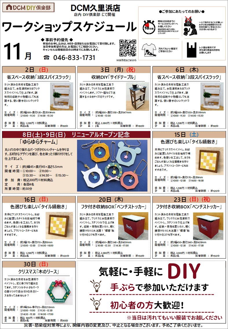 『11月のDIY教室スケジュール(久里浜店)』のご案内