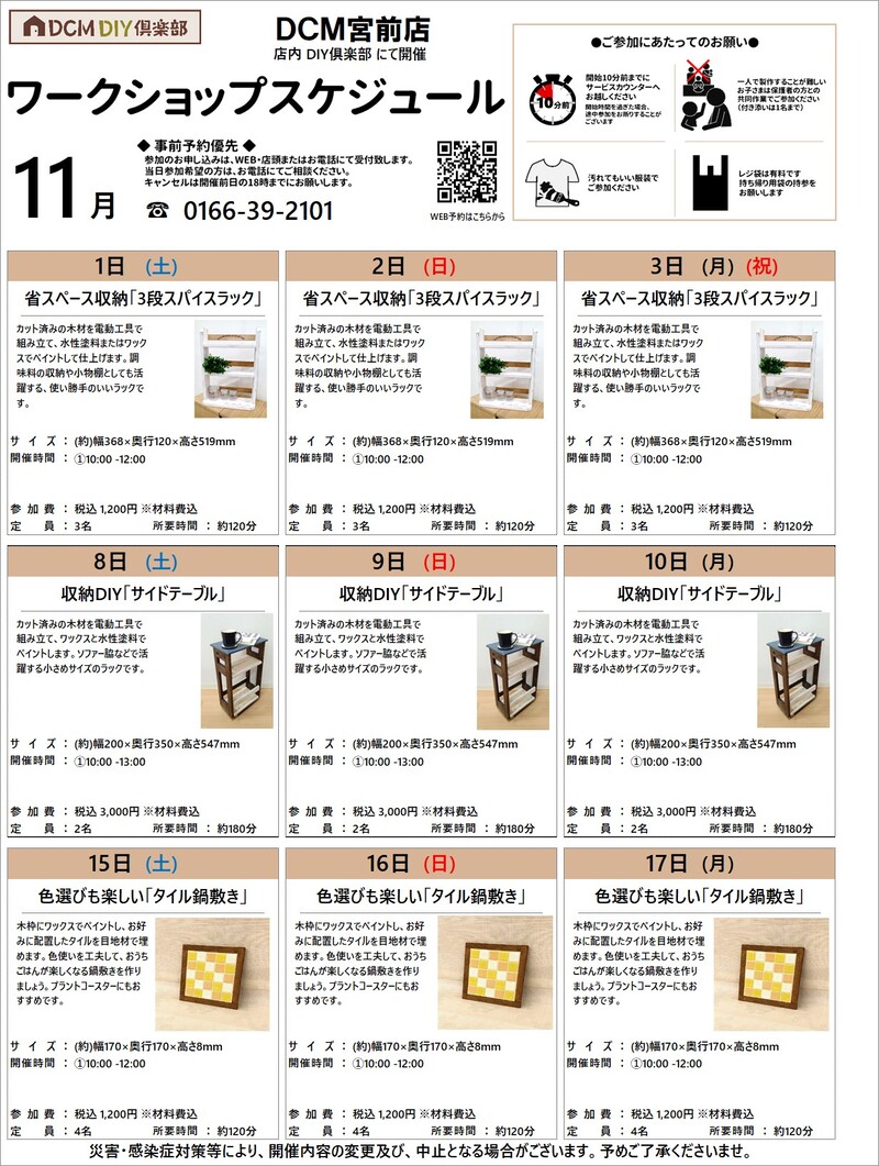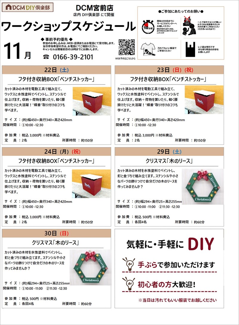 『11月のDIY教室スケジュール(宮前店)』のご案内