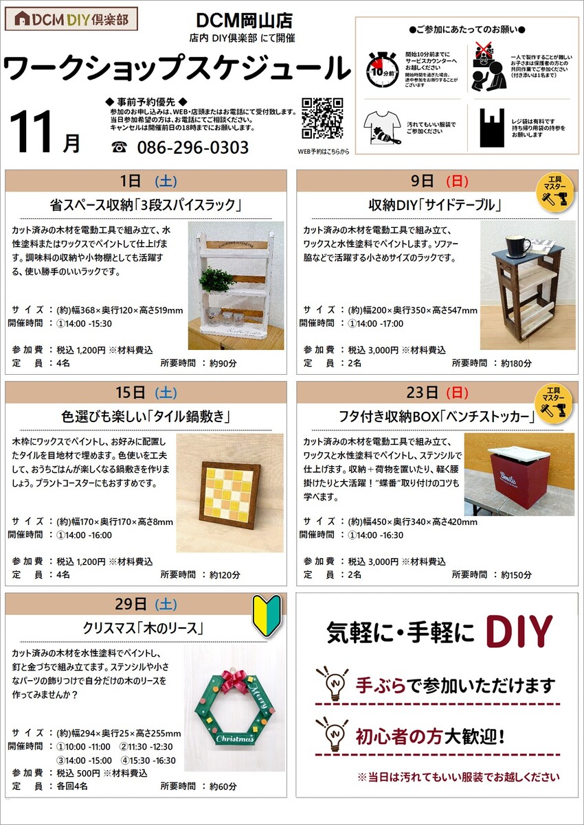 『11月のDIY教室スケジュール(岡山店)』のご案内