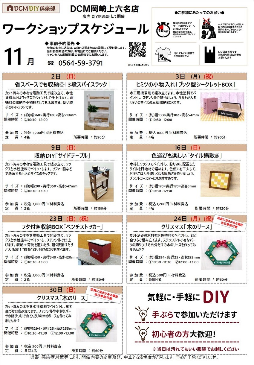 『11月のDIY教室スケジュール(岡崎上六名店)』のご案内