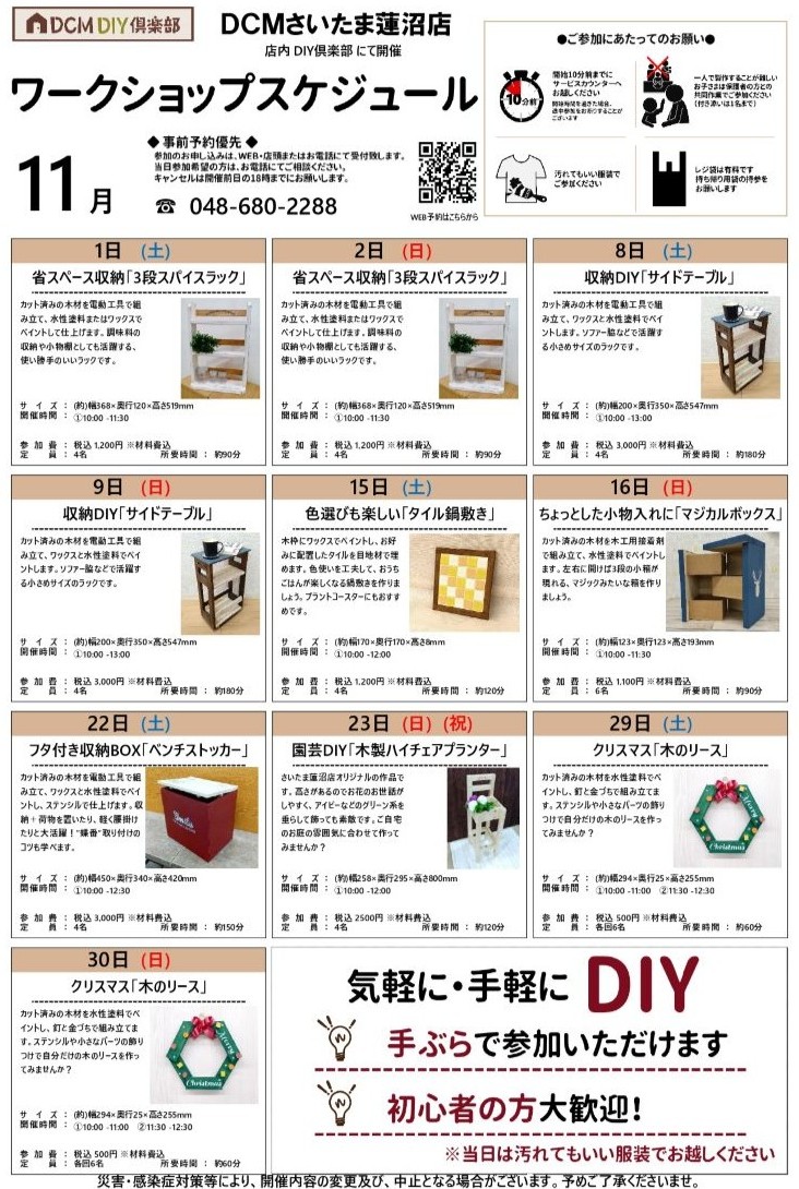 『11月のDIY教室スケジュール(さいたま蓮沼店)』のご案内