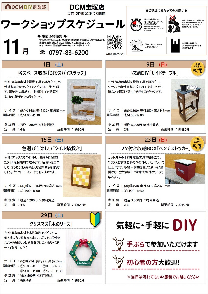 『11月のDIY教室スケジュール(宝塚店)』のご案内