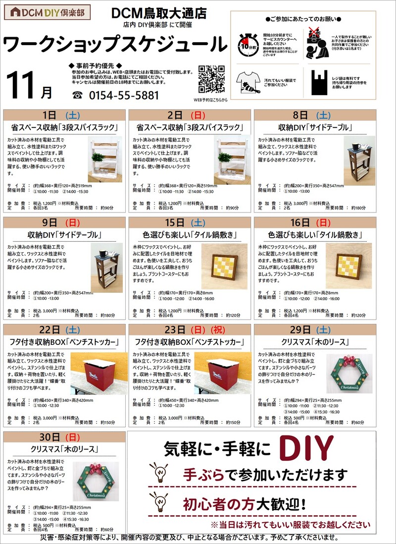 『11月のDIY教室スケジュール(鳥取大通店)』のご案内