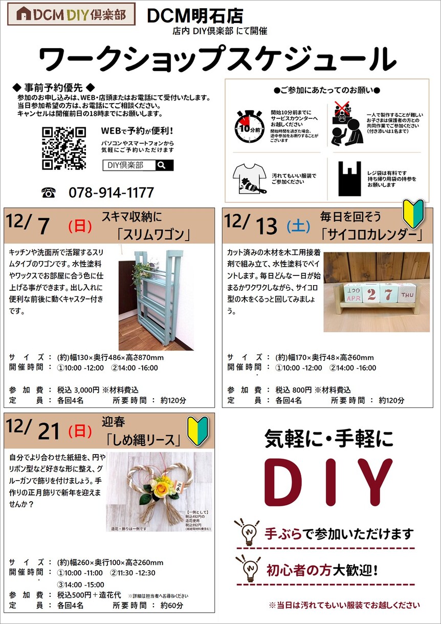 『12月のDIY教室スケジュール(明石店)』のご案内