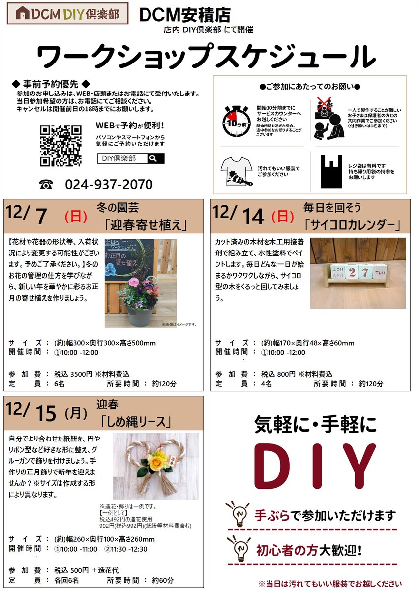 『12月のDIY教室スケジュール(安積店)』のご案内