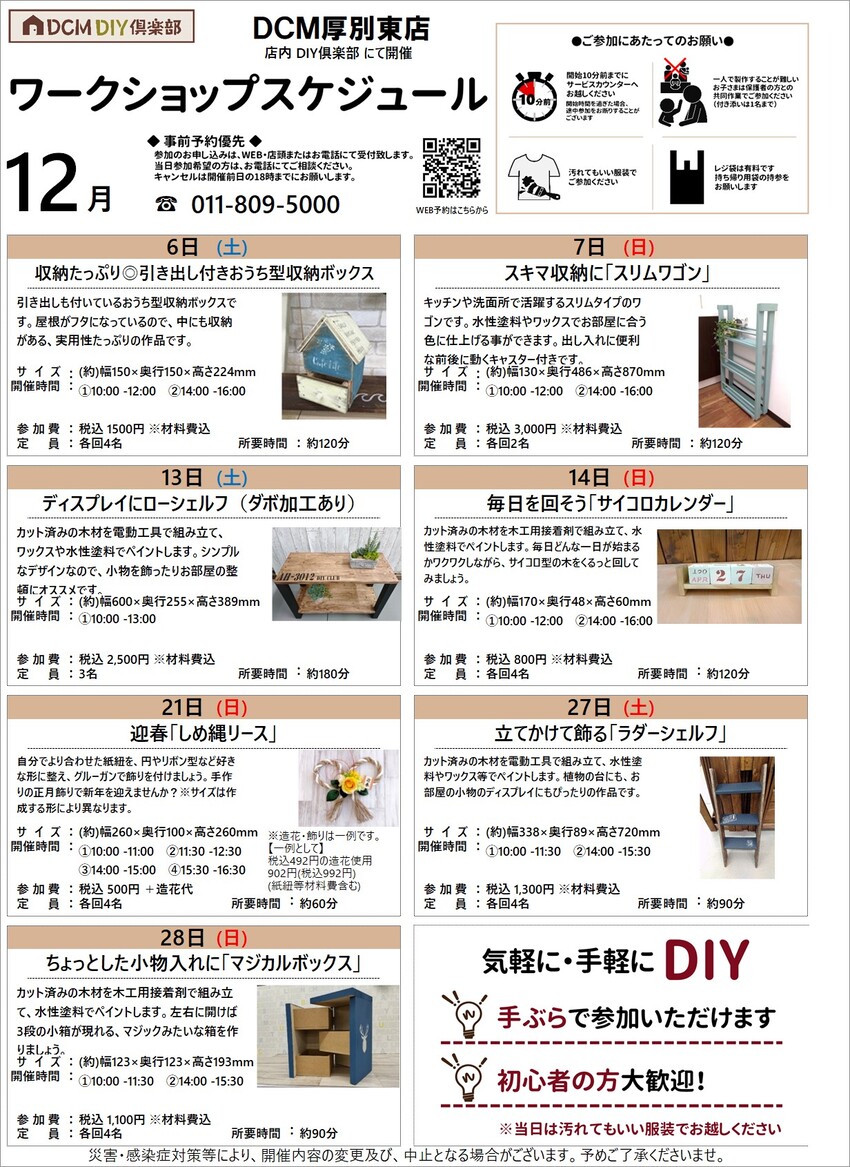 『12月のDIY教室スケジュール(厚別東店)』のご案内