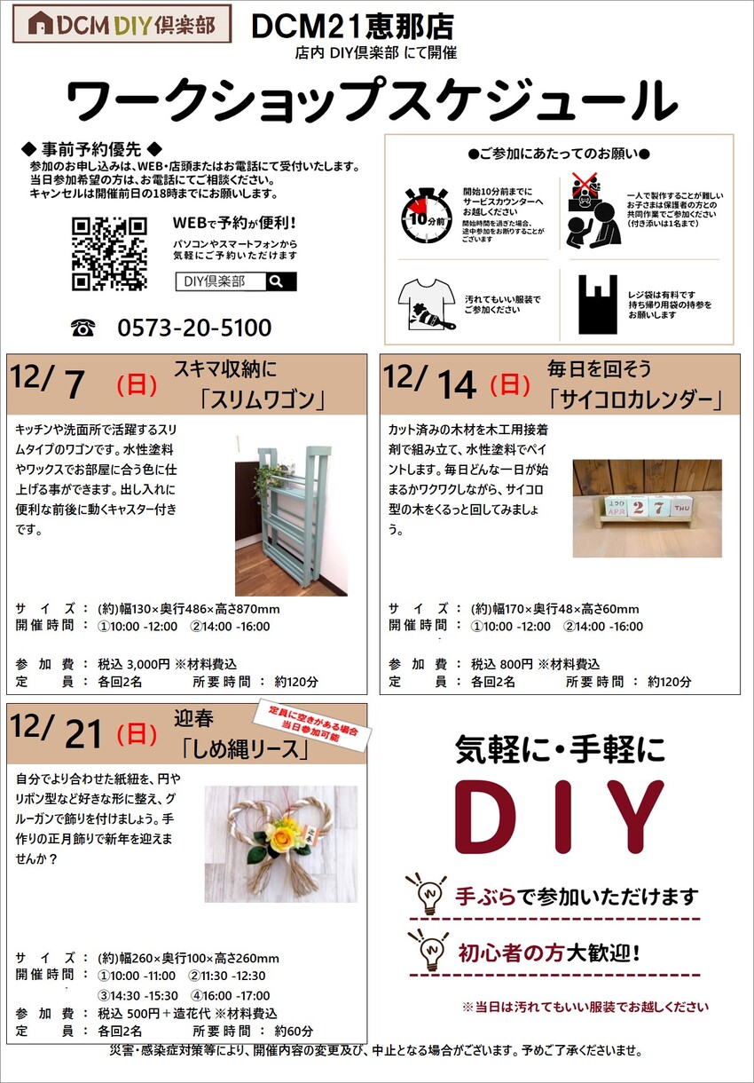 『12月のDIY教室スケジュール(恵那店)』のご案内