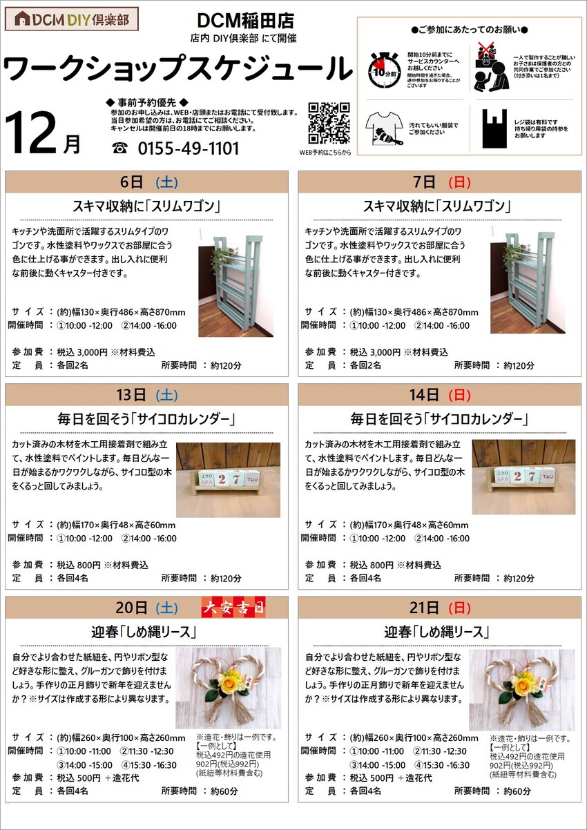 『12月のDIY教室スケジュール(稲田店)』のご案内