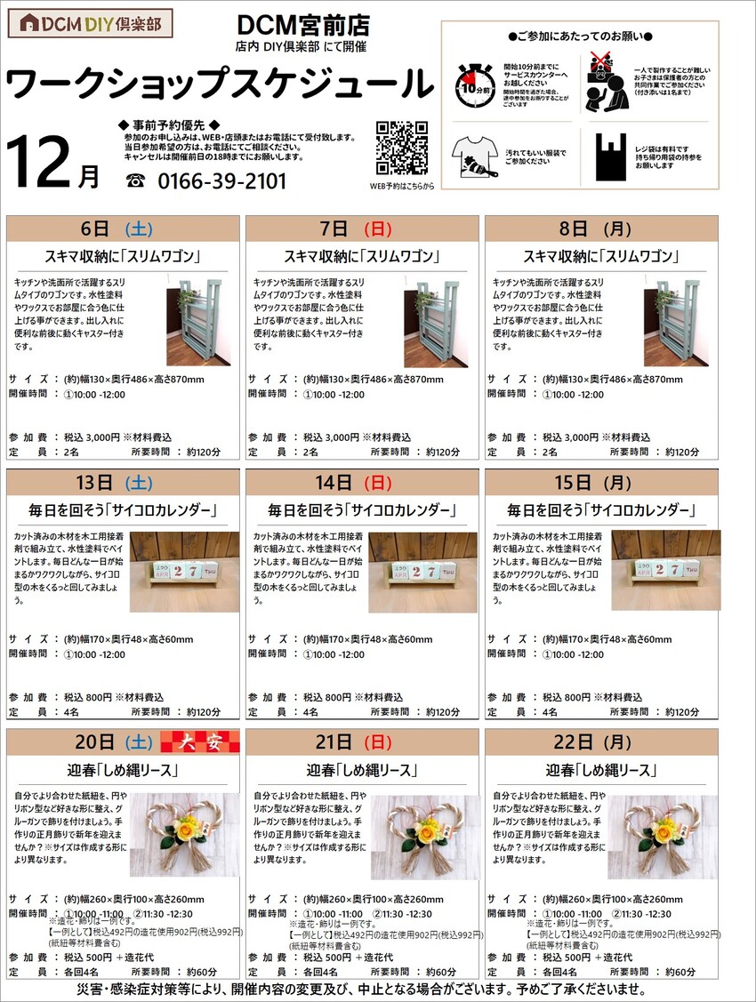 『12月のDIY教室スケジュール(宮前店)』のご案内
