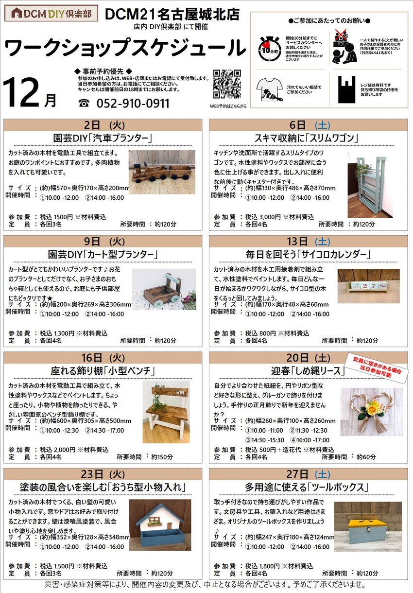 『12月のDIY教室スケジュール(名古屋城北店)』のご案内