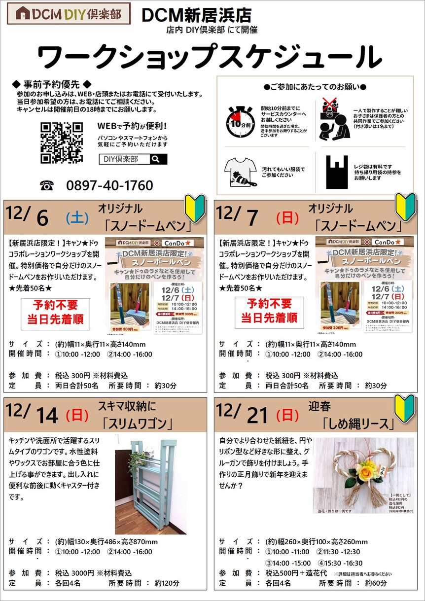 『12月のDIY教室スケジュール(新居浜店)』のご案内