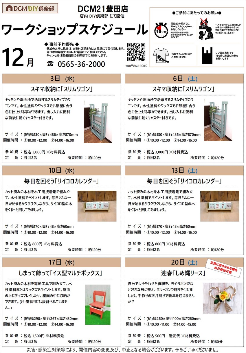 『12月のDIY教室スケジュール(豊田店)』のご案内