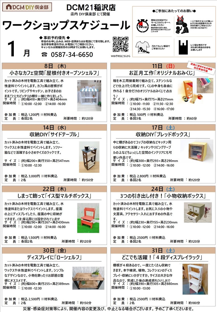 『1月のDIY教室スケジュール(稲沢店)』のご案内