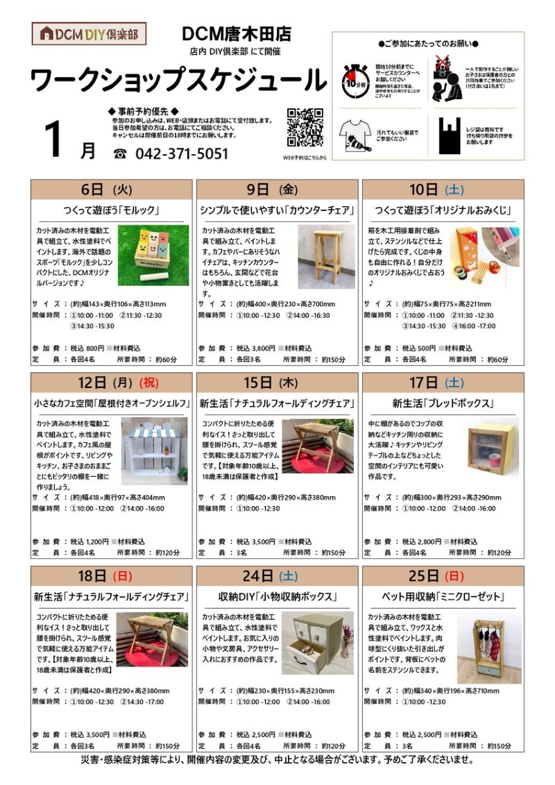 『1月のDIY教室スケジュール(唐木田店)』のご案内