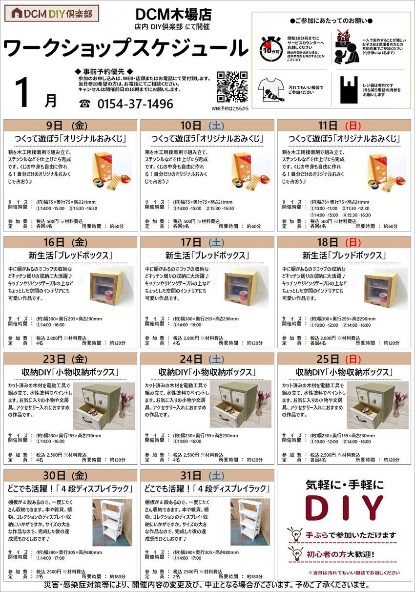 『1月のDIY教室スケジュール(木場店)』のご案内