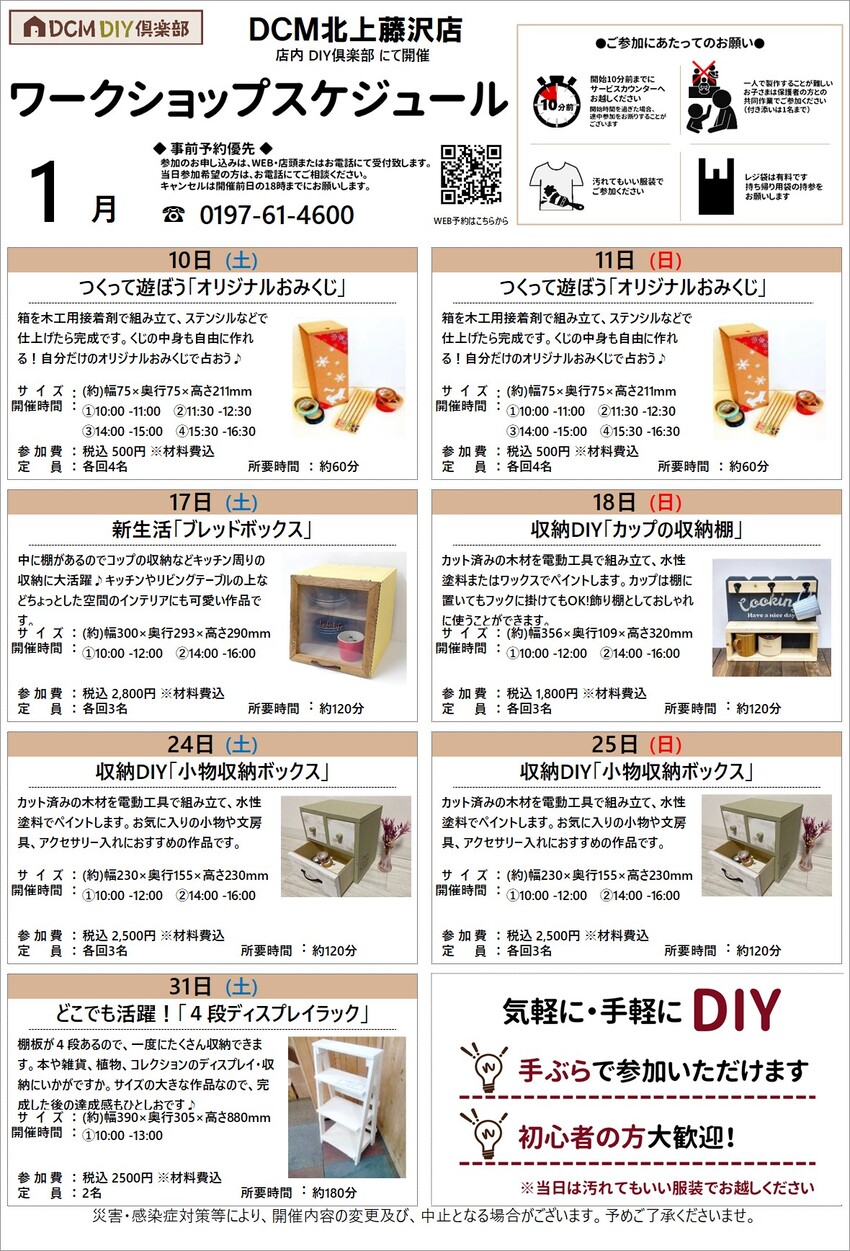 『1月のDIY教室スケジュール(北上藤沢店)』のご案内