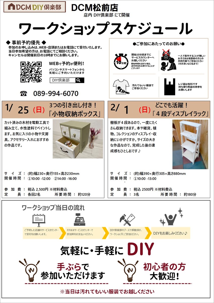 『1月のDIY教室スケジュール(松前店)』のご案内