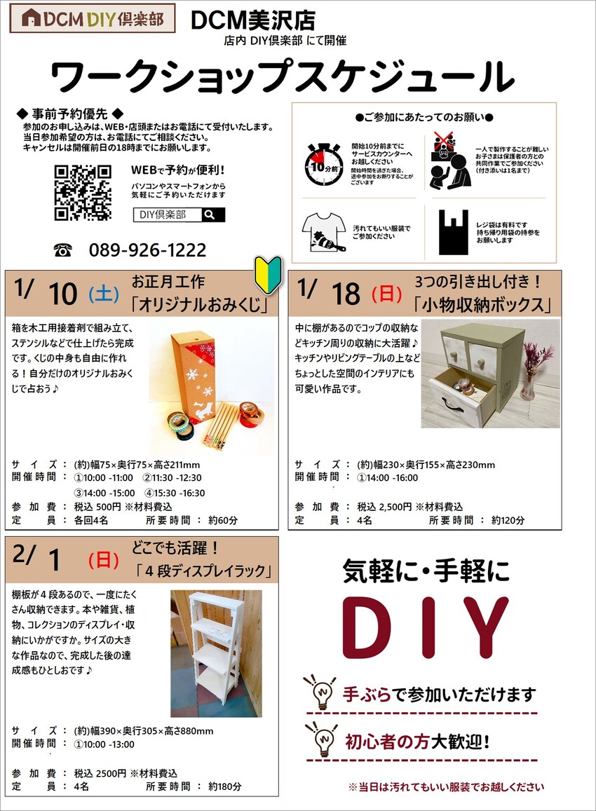 『1月のDIY教室スケジュール(美沢店)』のご案内