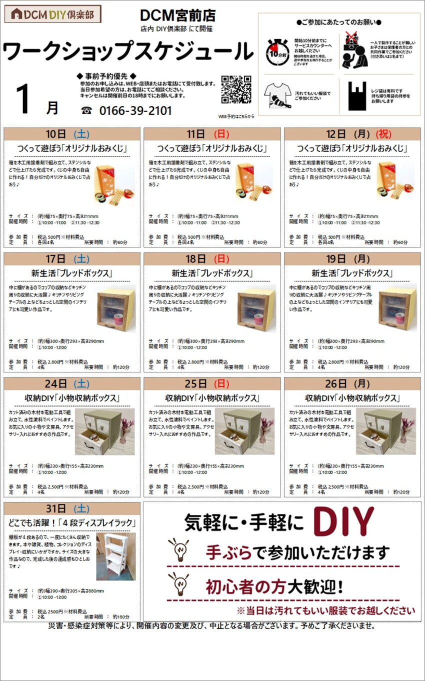 『1月のDIY教室スケジュール(宮前店)』のご案内