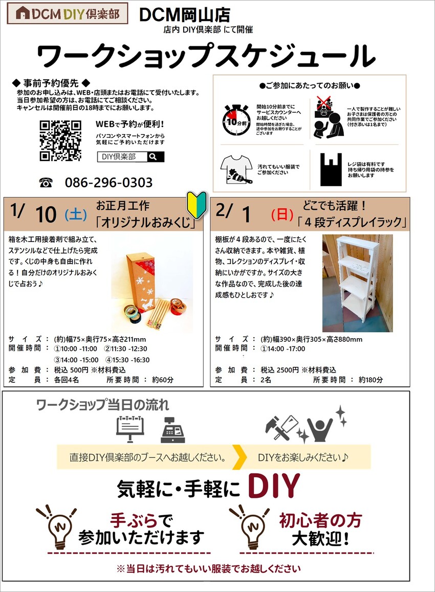 『1月のDIY教室スケジュール(岡山店)』のご案内