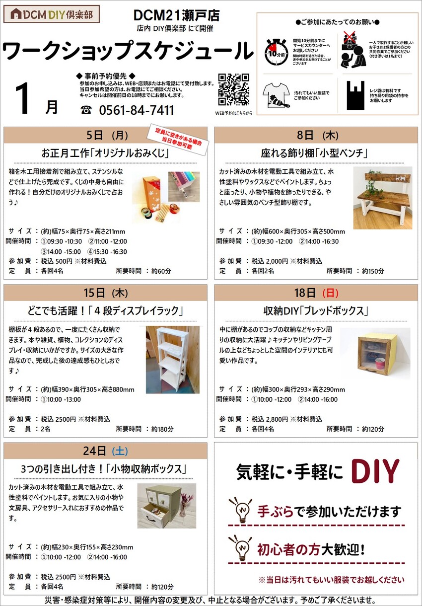 『1月のDIY教室スケジュール(瀬戸店)』のご案内