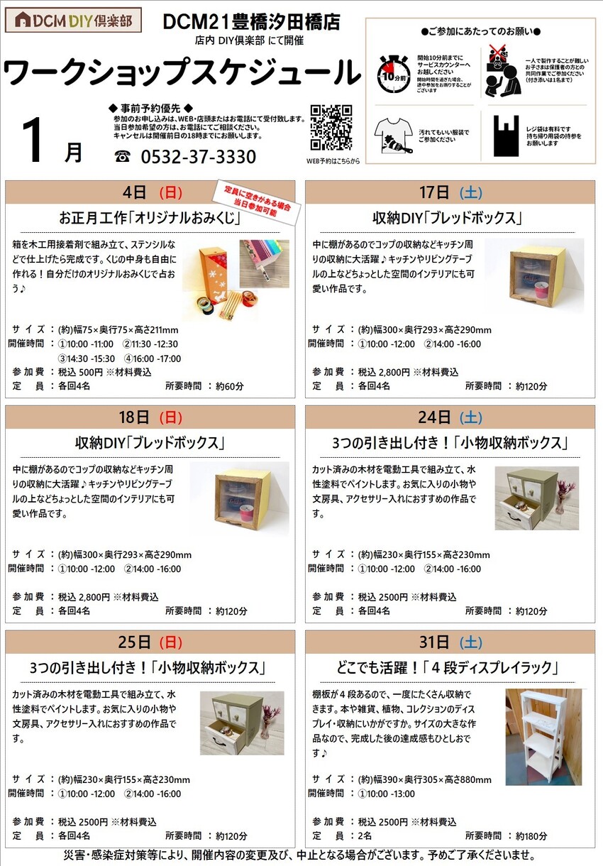 『1月のDIY教室スケジュール(豊橋汐田橋店)』のご案内