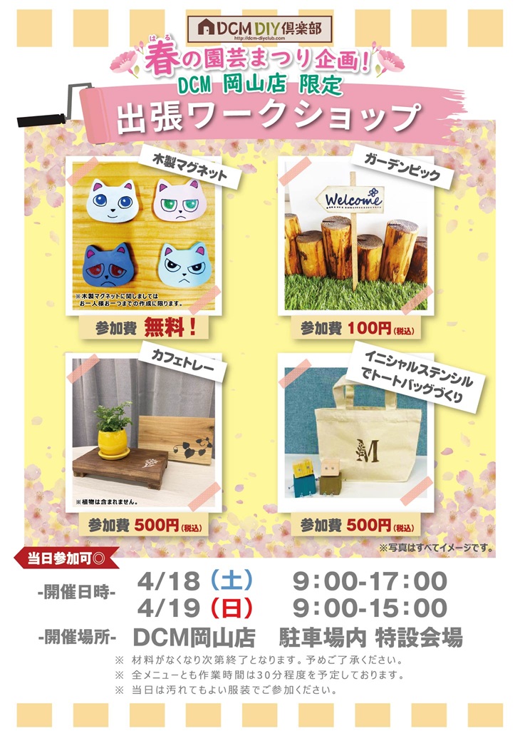岡山店限定 DIY倶楽部ワークショップ開催のご案内
