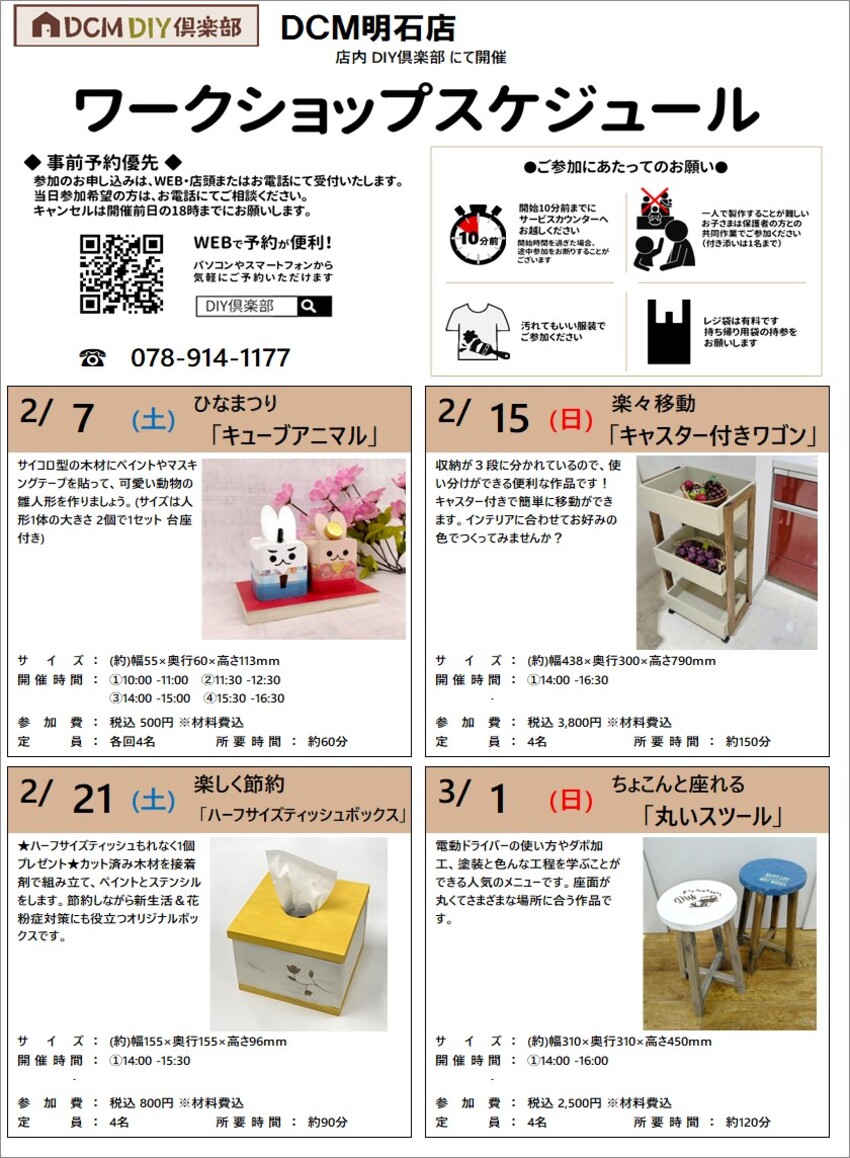 『2月のDIY教室スケジュール(明石店)』のご案内