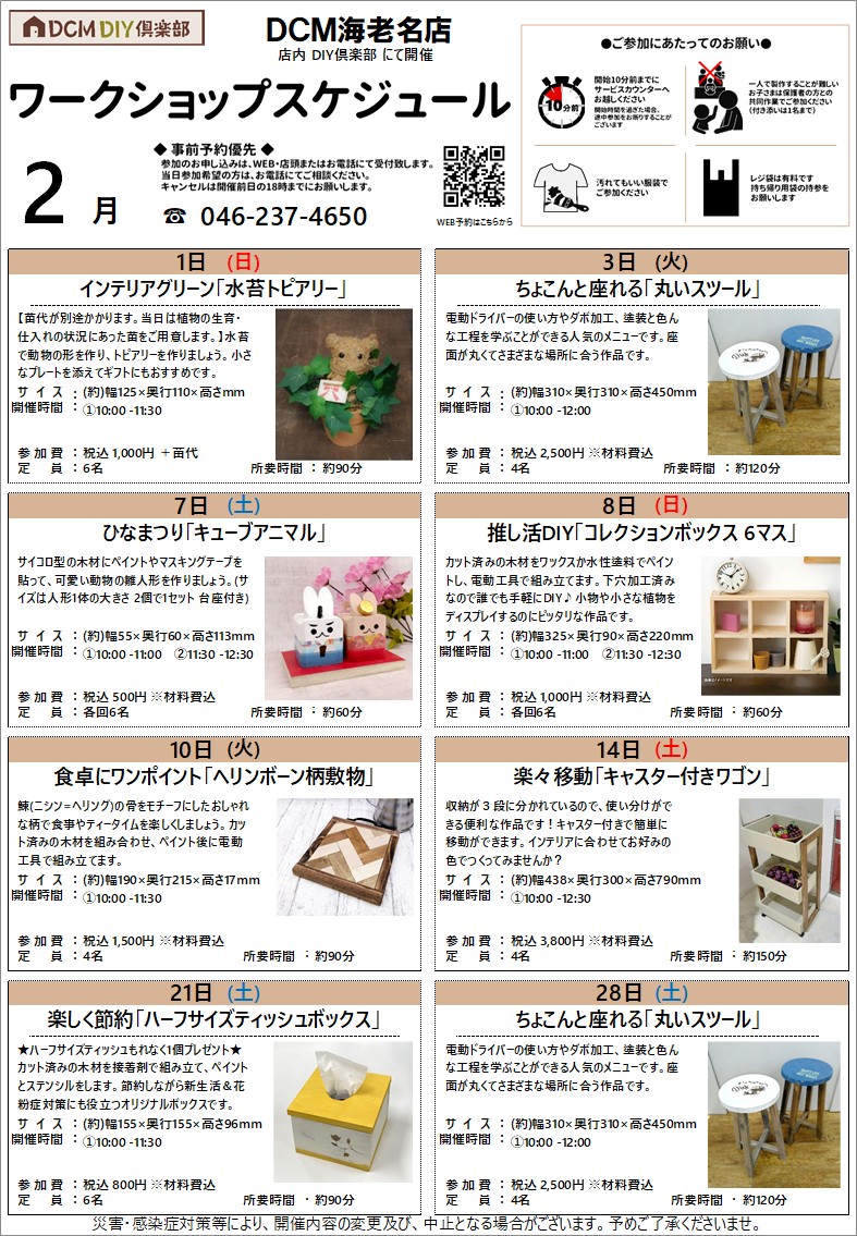 『2月のDIY教室スケジュール(海老名店)』のご案内