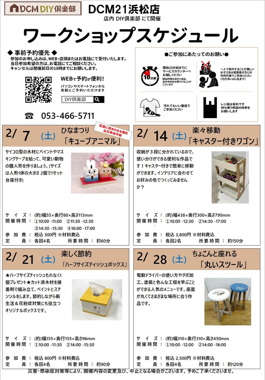 『2月のDIY教室スケジュール(浜松店)』のご案内