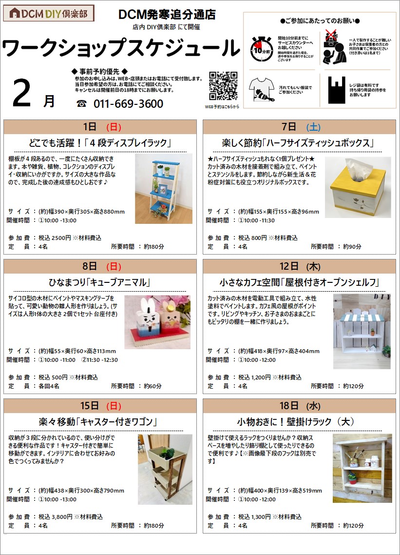 『2月のDIY教室スケジュール(発寒追分店)』のご案内
