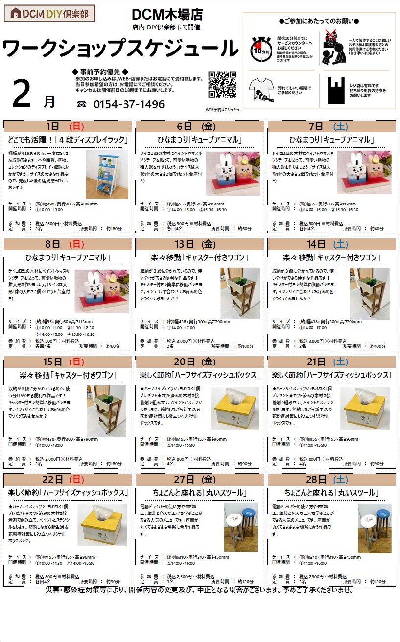 『2月のDIY教室スケジュール(木場店)』のご案内