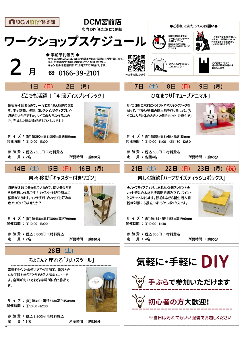 『2月のDIY教室スケジュール(宮前店)』のご案内