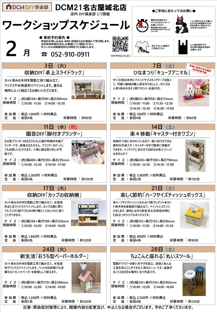 『2月のDIY教室スケジュール(名古屋城北店)』のご案内