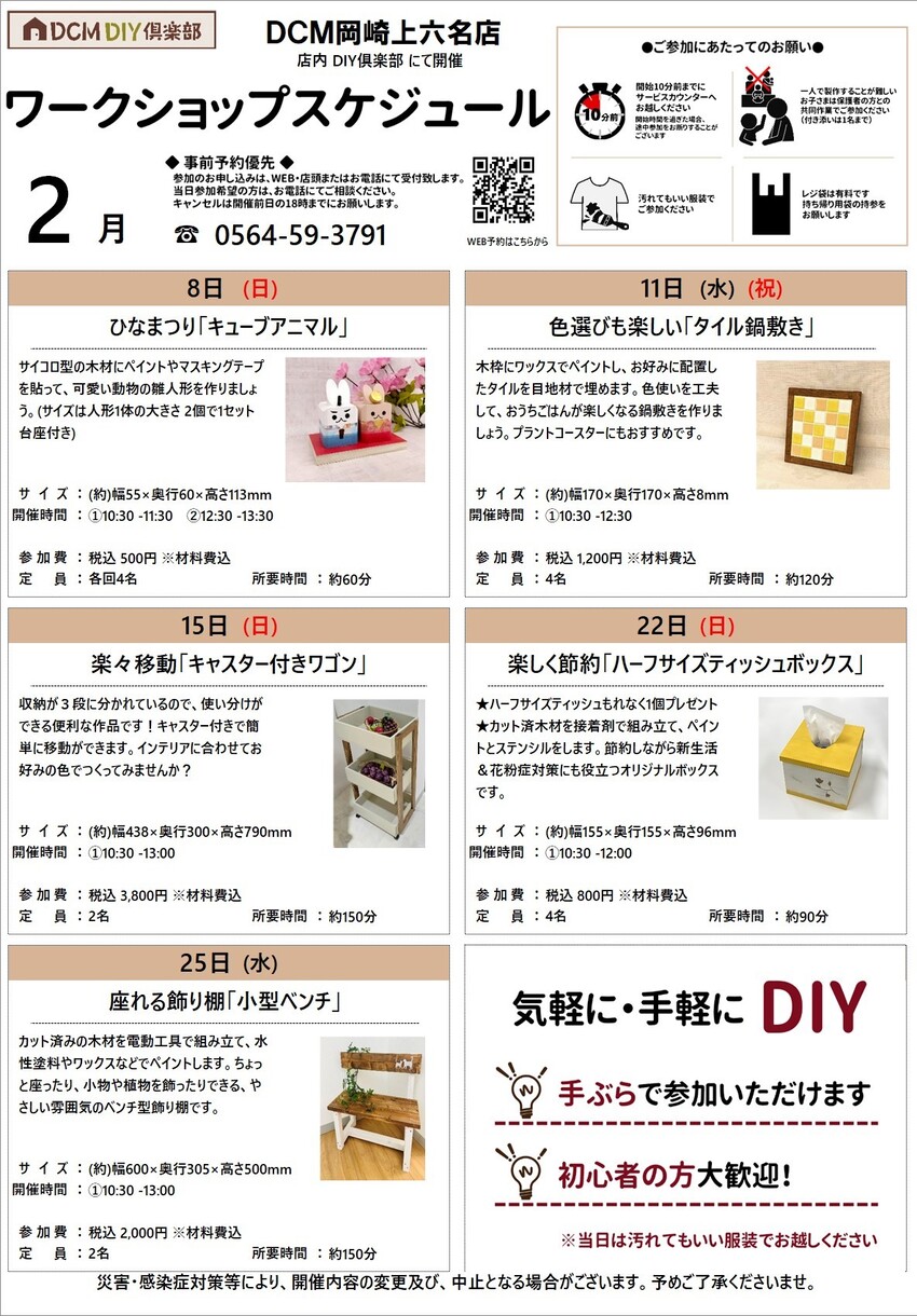 『2月のDIY教室スケジュール(岡崎上六名店)』のご案内