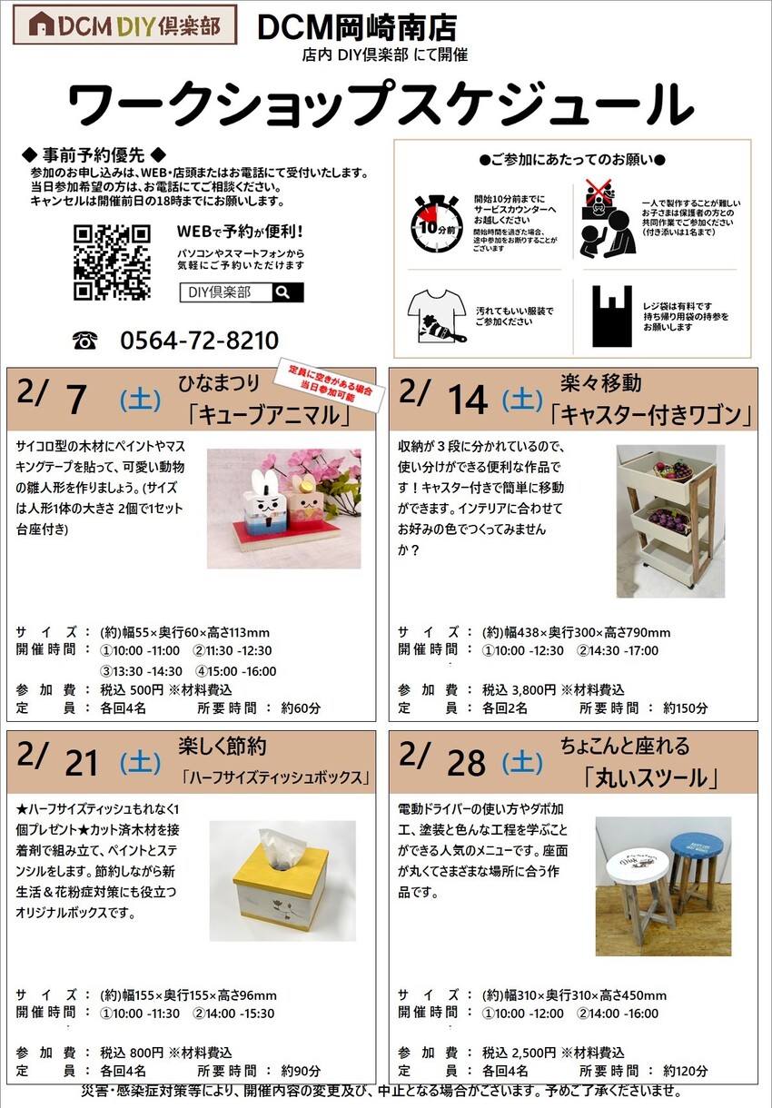 『2月のDIY教室スケジュール(岡崎南店)』のご案内