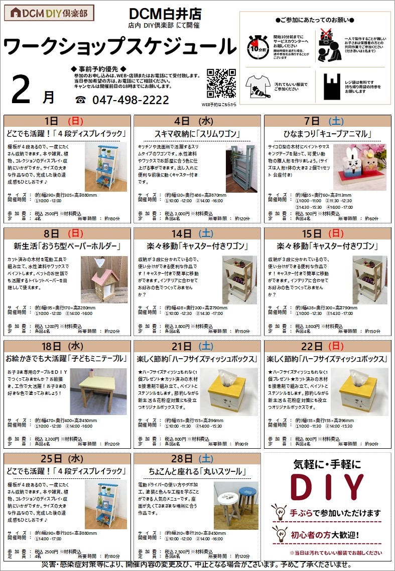 『2月のDIY教室スケジュール(白井店)』のご案内